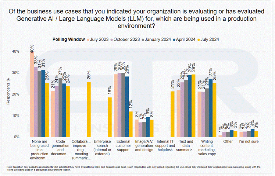 - Some 63% are tapping cloud AI APIs (for example, OpenAI and Anthropic) to integrate LLM capabilities into some workflows.