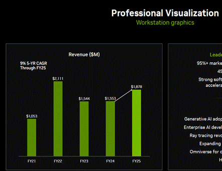 - Products: GPUs for designers, engineers, and creatives (e.g., RTX A6000).